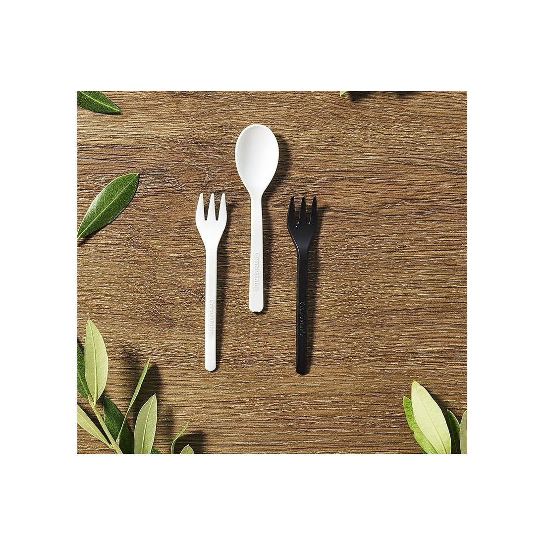 Kompostovateľné mini vidličky 10cm, čierne, recyklovateľné