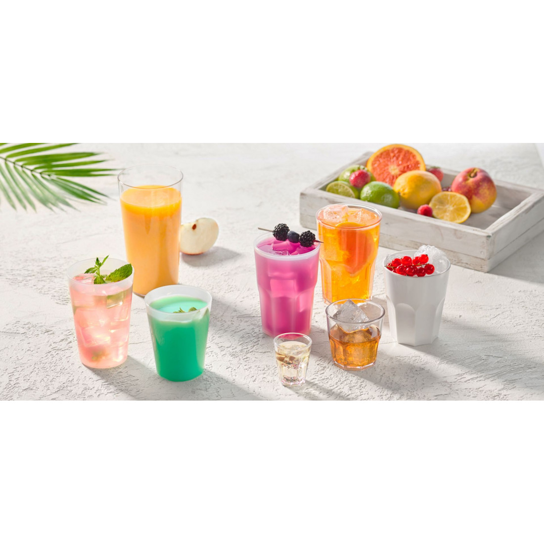 Verná podoba skla ale ich hmotnosť je štvrtinová. Vydržia vám až 500 umývacích cyklov v umývačke riadu. Ideálne poháre všade tam kde je použitia skla nebezpečné. Rôzne poháre na alko, nealko a koktaily.