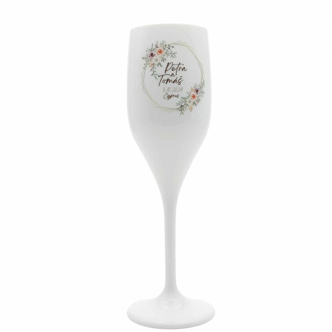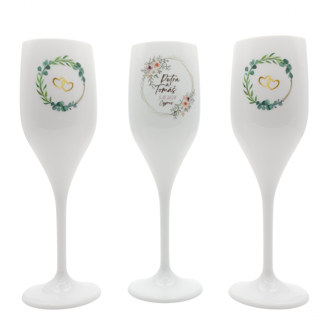 Svadobné nerozbitné poháre s vlastným dizajnom, menom, dátumom