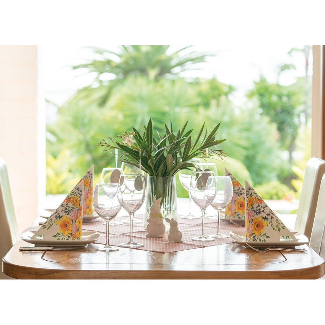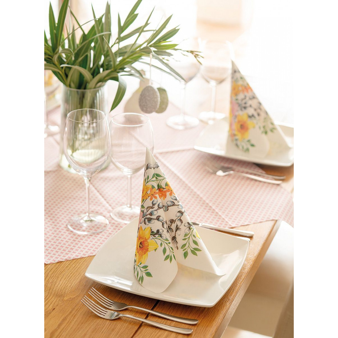Krásne jarné servítky z kvalitného 3-vrstvového papiera s motívom narcisov, tulipánov a zlatého dažďa prinesú na váš stôl sviežu jarnú atmosféru. Vďaka kvalitnému spracovaniu si výborne držia tvar na stole, sú príjemné na dotyk a dostupné za výhodnú cenu.. Ideálne servítky na veľkonočné stolovanie, jarné oslavy aj každodennú dekoráciu stola. Kvetinový dizajn v žiarivých farbách krásne doplní sviatočnú výzdobu a poteší každého hosťa.