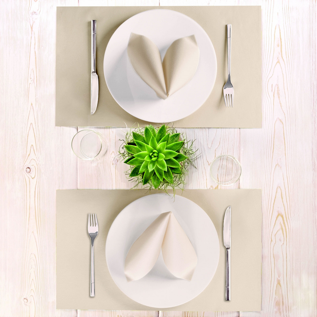 Prestieranie pod taniere z netkanej textílie v jemnej kapučíno farbe je praktické a elegantné riešenie pre hotely, reštaurácie a catering. Materiál verne napodobňuje látku, je pevný, hygienický a príjemný na dotyk. Zabezpečí vždy upravený stôl pri raňajkách, obedoch aj večeriach a zanechá profesionálny dojem u hostí.
