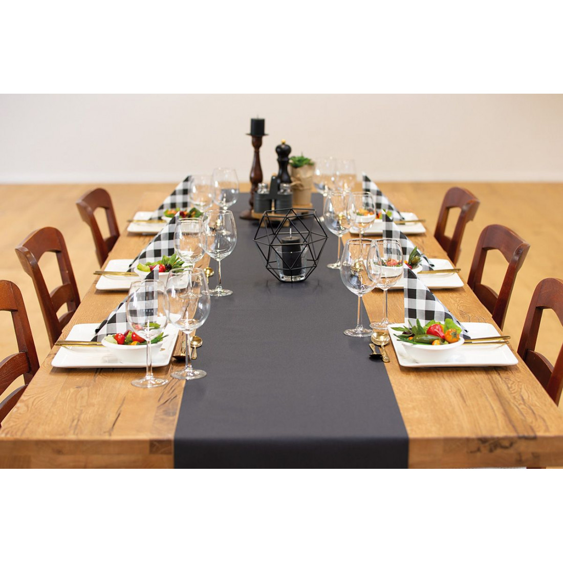 Jednofarebný stredový behúň na stôl z netkanej textílie, farba čierna, praktické použitie, sýty farebný odtieň, extra pevný a nepriehľadný materiál.