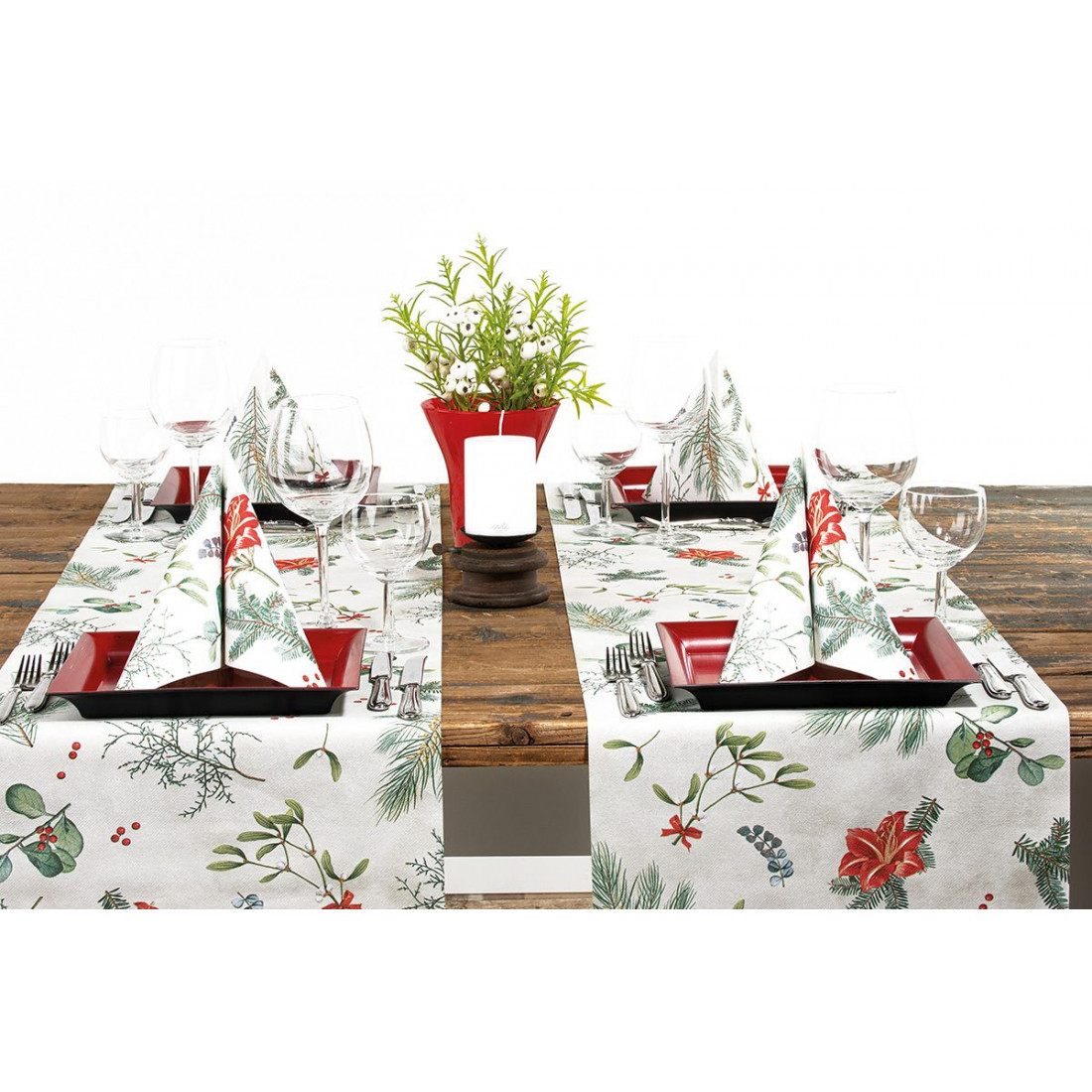 Vianočné servítky Amaryllis z netkanej textílie Vás potešia svojim romantickým dizajnom. Vianočná ruža, zelené vetvičky na bledom podklade zaručia nádych luxusu na Vašich stoloch. Vianočné obrúsky v tej najvyššej kvalite a v top dizajne. Vianočné prestieranie dodáva slávnostné vyzdobenému stolu vianočný šmrnc.