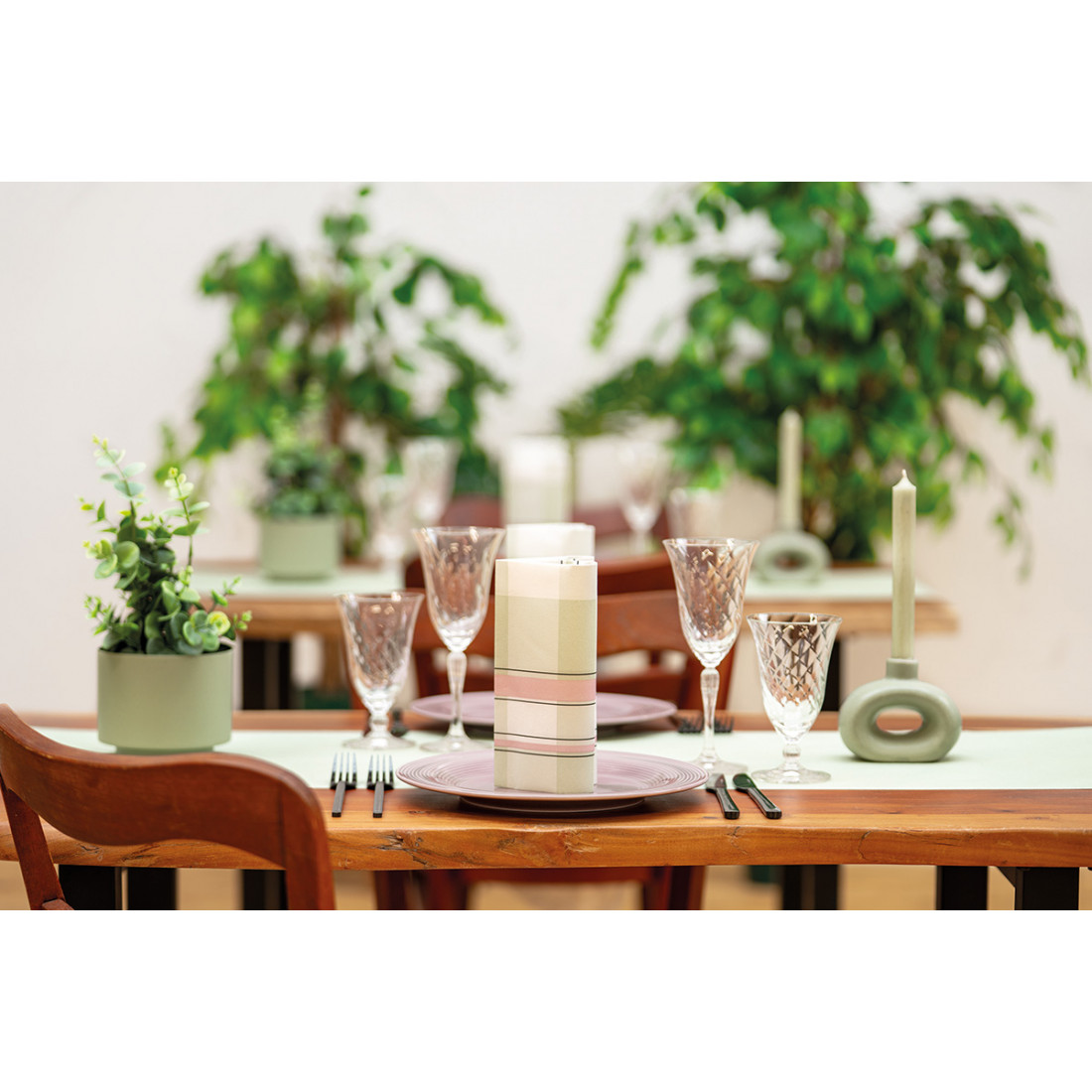 Elegantné slávnostné servítky v pastelovej ružovej a pastelovej zelenej farbe ľahko skombinujete s jednofarebnými behúňmi a vytvoríte jemné pastelové prestieranie. Pastelová zelená a pastelová ružová sa hodia na akúkoľvek príležitosť. Servítky sú vyrobené z kvalitnej netkanej textílie, ktorá verne napodobňuje látku a pôsobí luxusne.