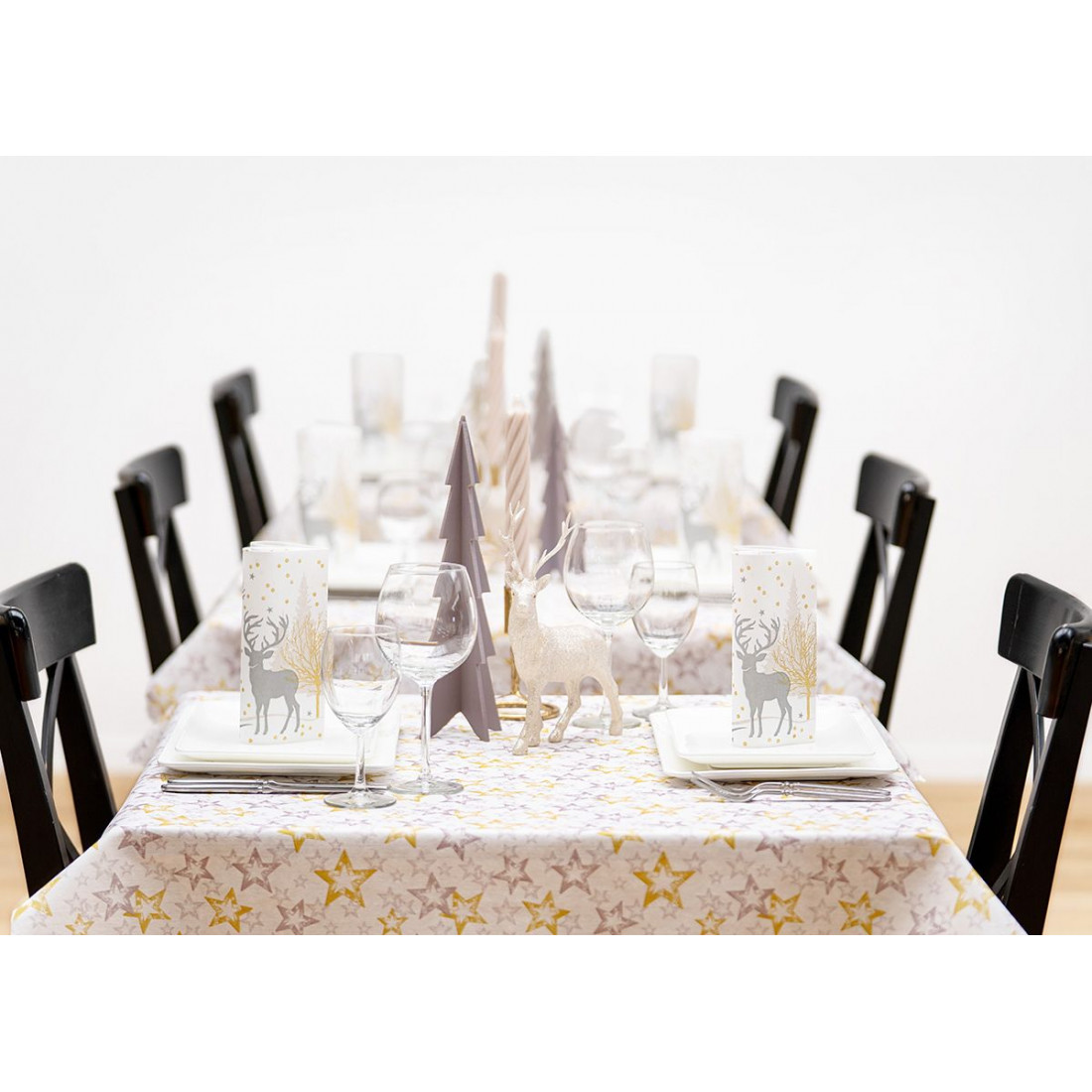 Vianočný obrus Allison z netkanej textílie so strieborno-zlatými hviezdami je dokonalou voľbou pre elegantné sviatočné stolovanie. Jemný lesk hviezd vytvára čarovnú a slávnostnú atmosféru, ktorá vynikne pri každej vianočnej večeri. Obrus je vyrobený z kvalitnej netkanej textílie, ktorá je ľahká, praktická a nenáročná na údržbu. Vďaka svojmu modernému dizajnu v kombinácii striebornej a zlatej farby sa hodí do každého interiéru a krásne doplní vianočnú výzdobu.