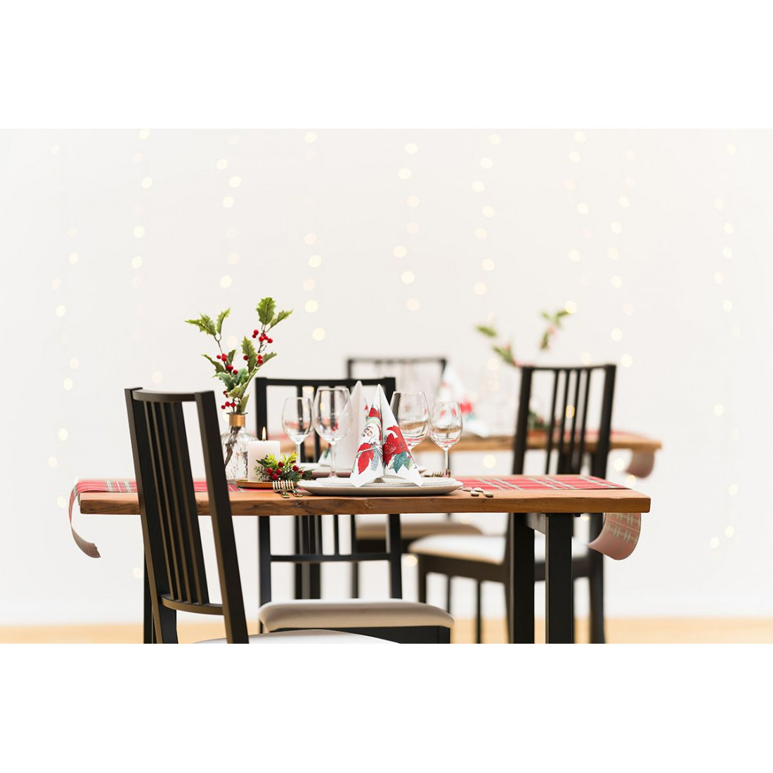 Doprajte svojmu sviatočnému stolovaniu dokonalý vzhľad s našimi vianočnými servítkami Niklas, ktoré zaujmú dizajnom vianočnej ruže na jednej strane a motívom Mikuláša na druhej.